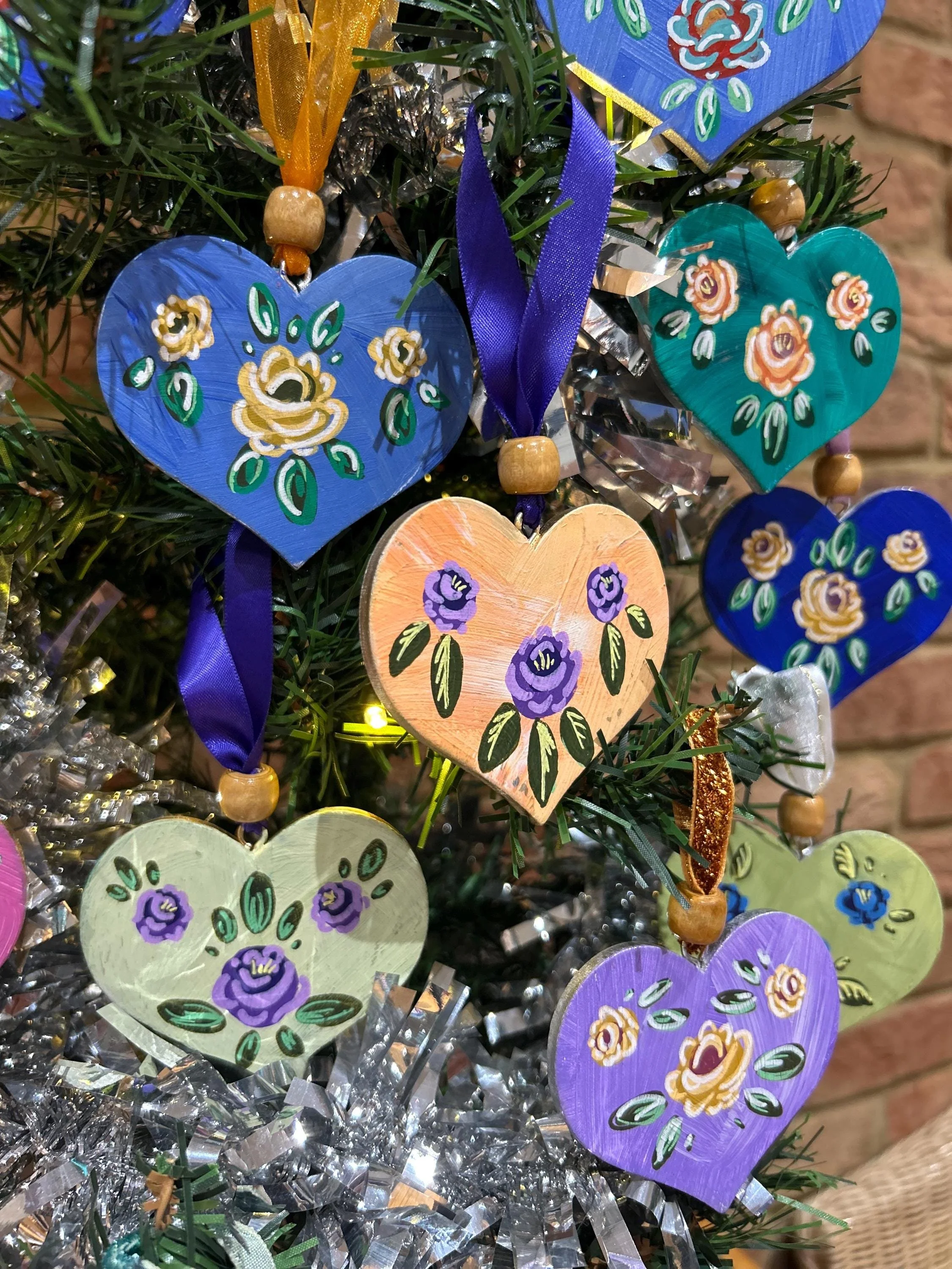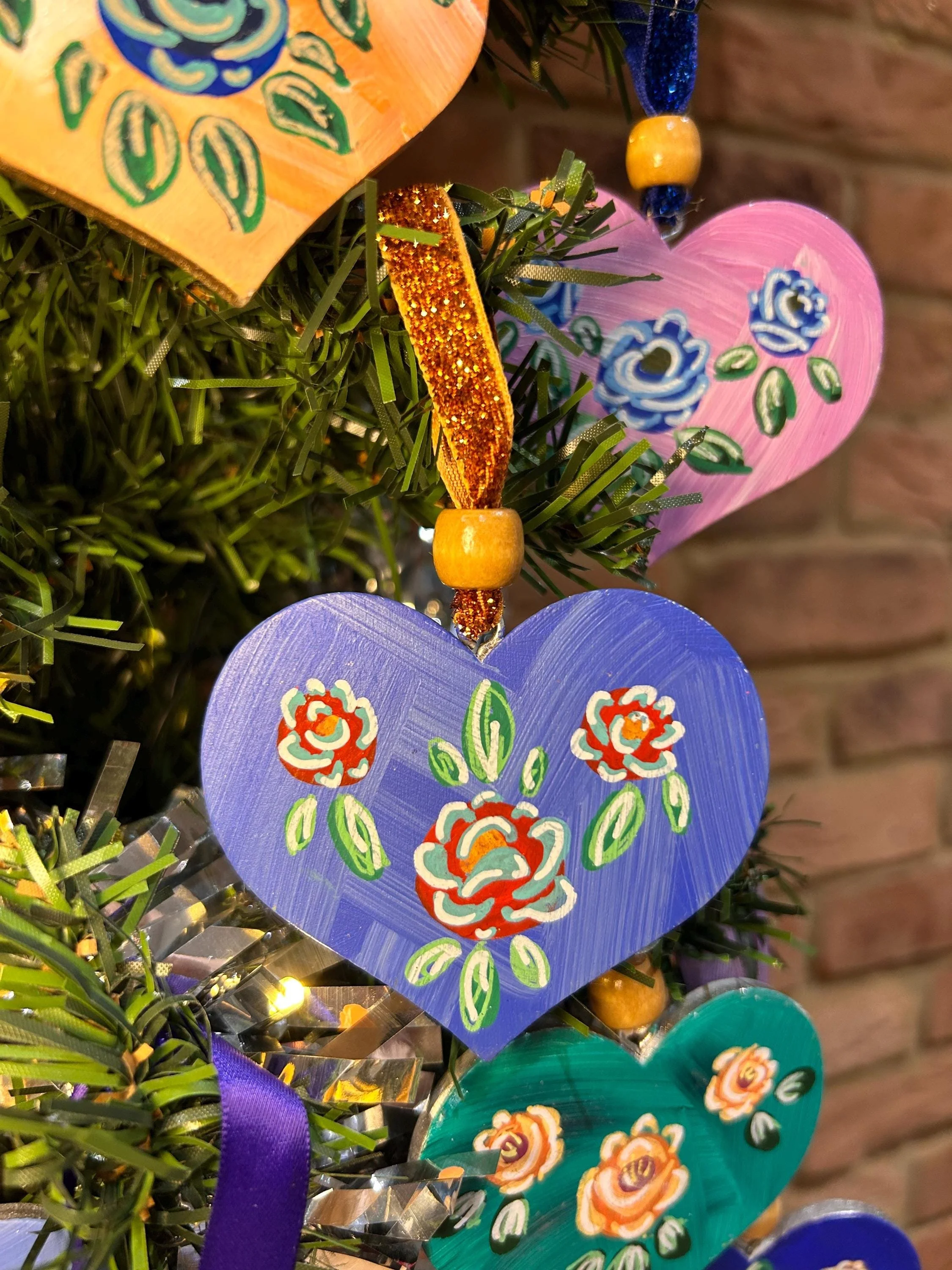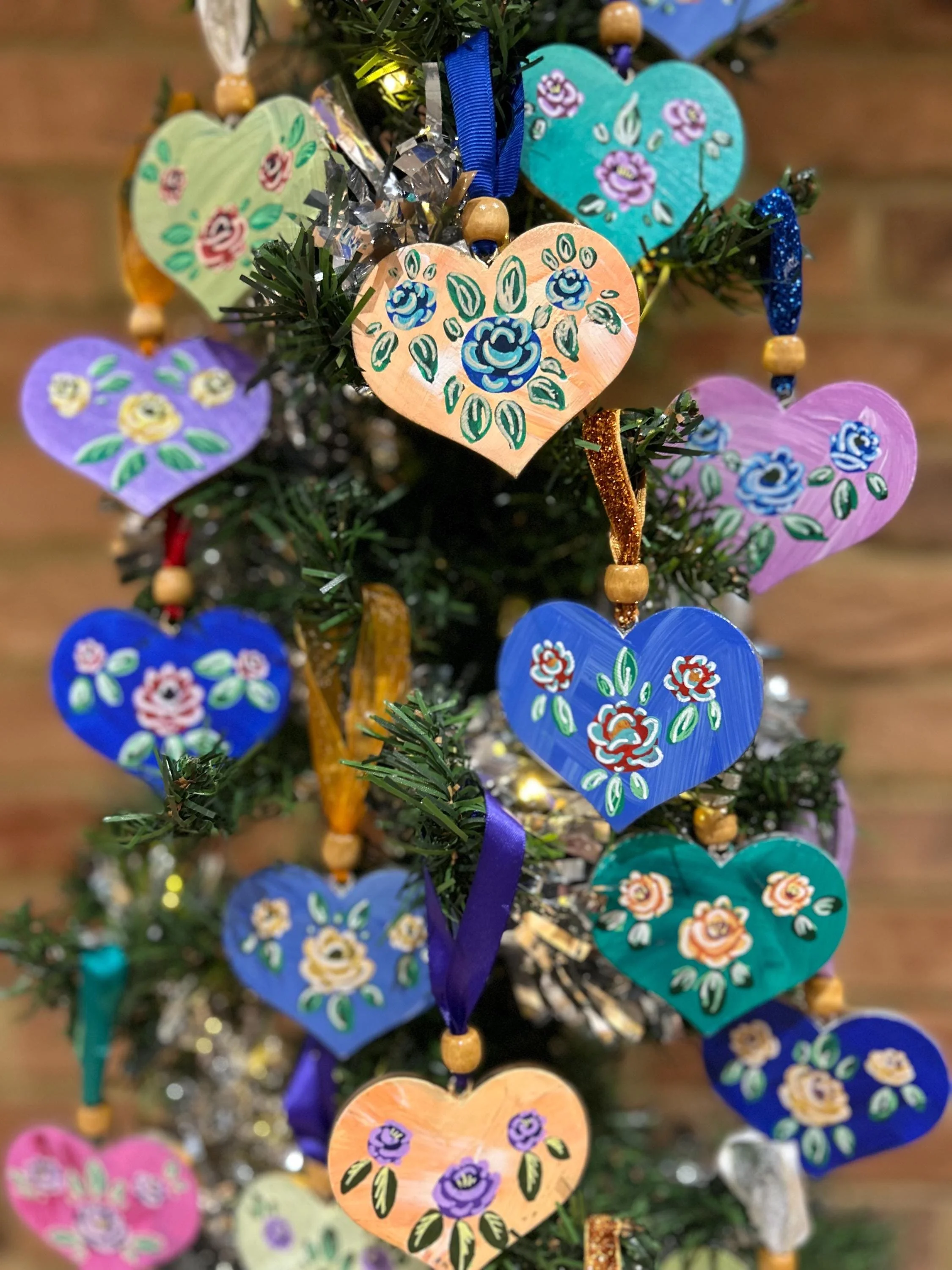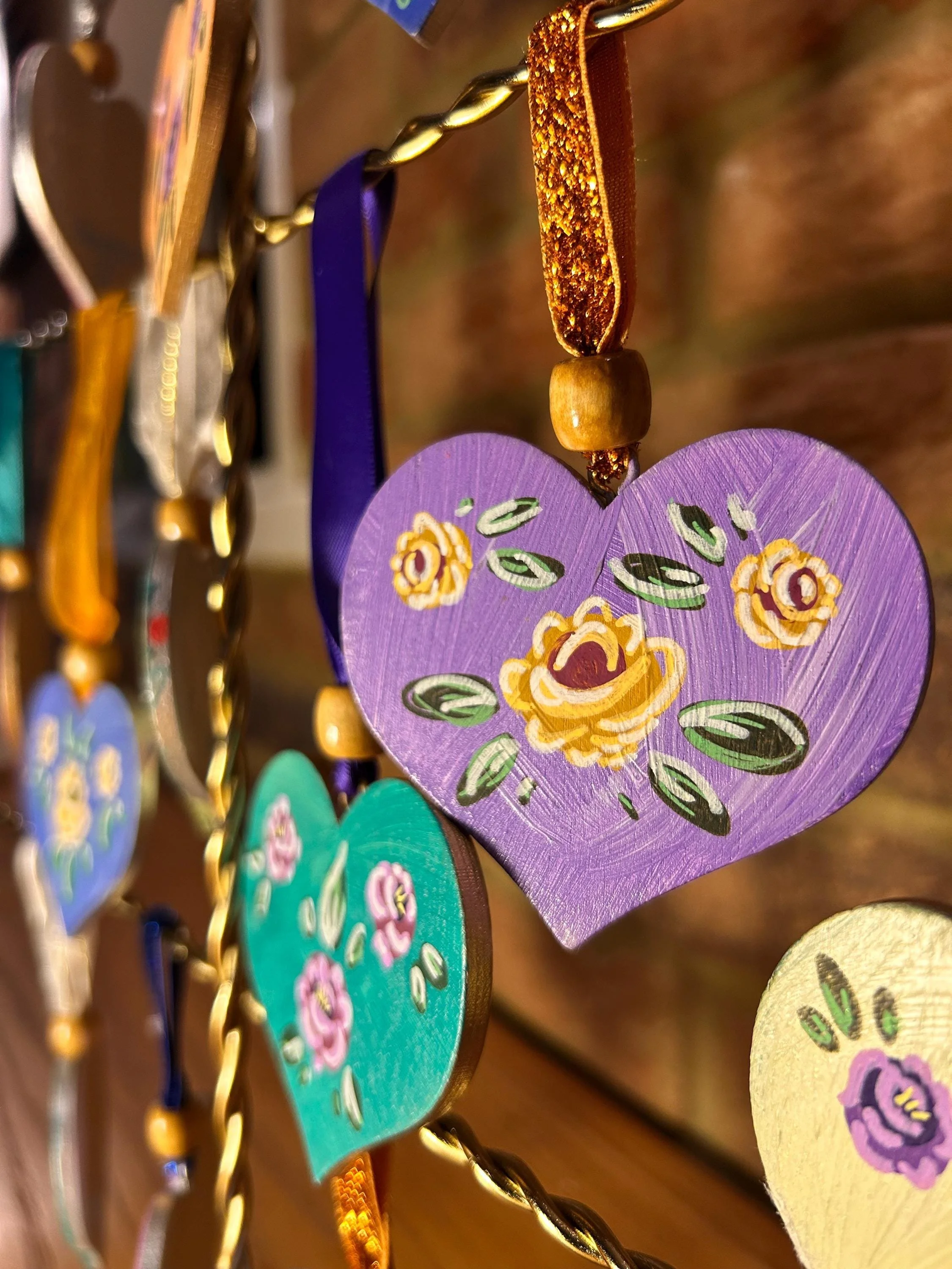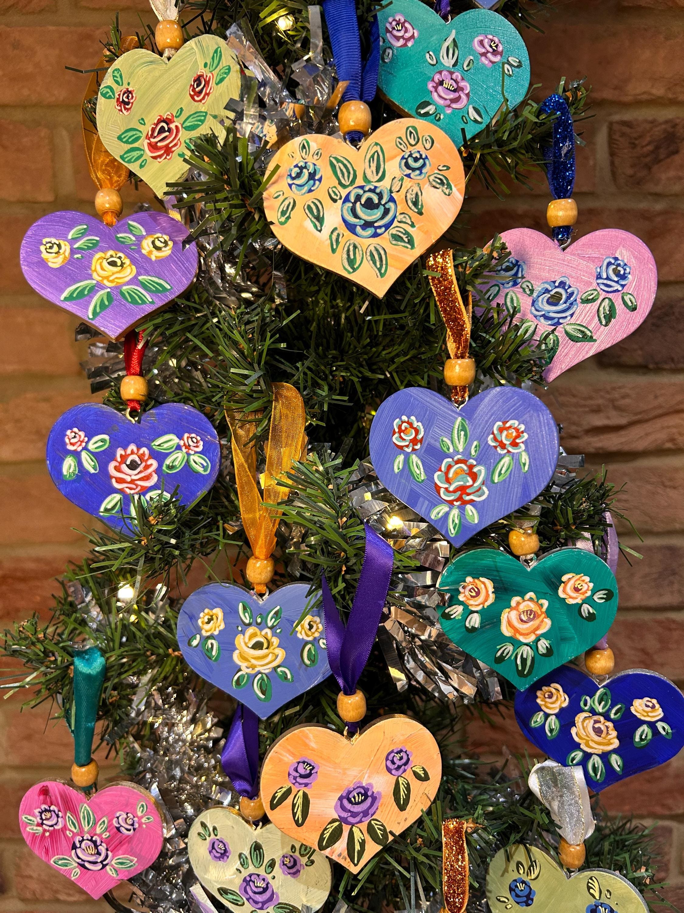 Scandinavian Rose | Hand Painted Wooden Heart | Folk Art Decor