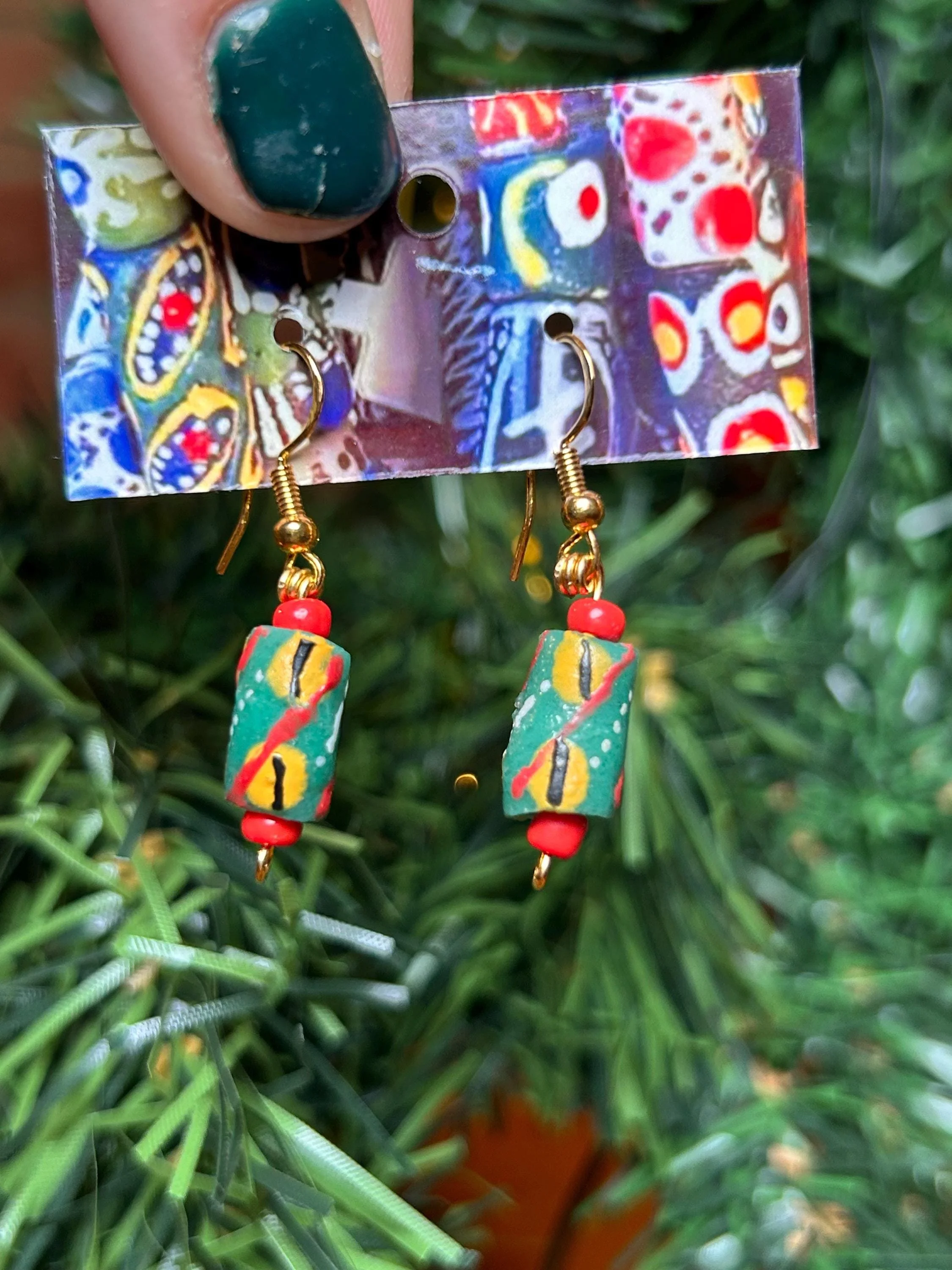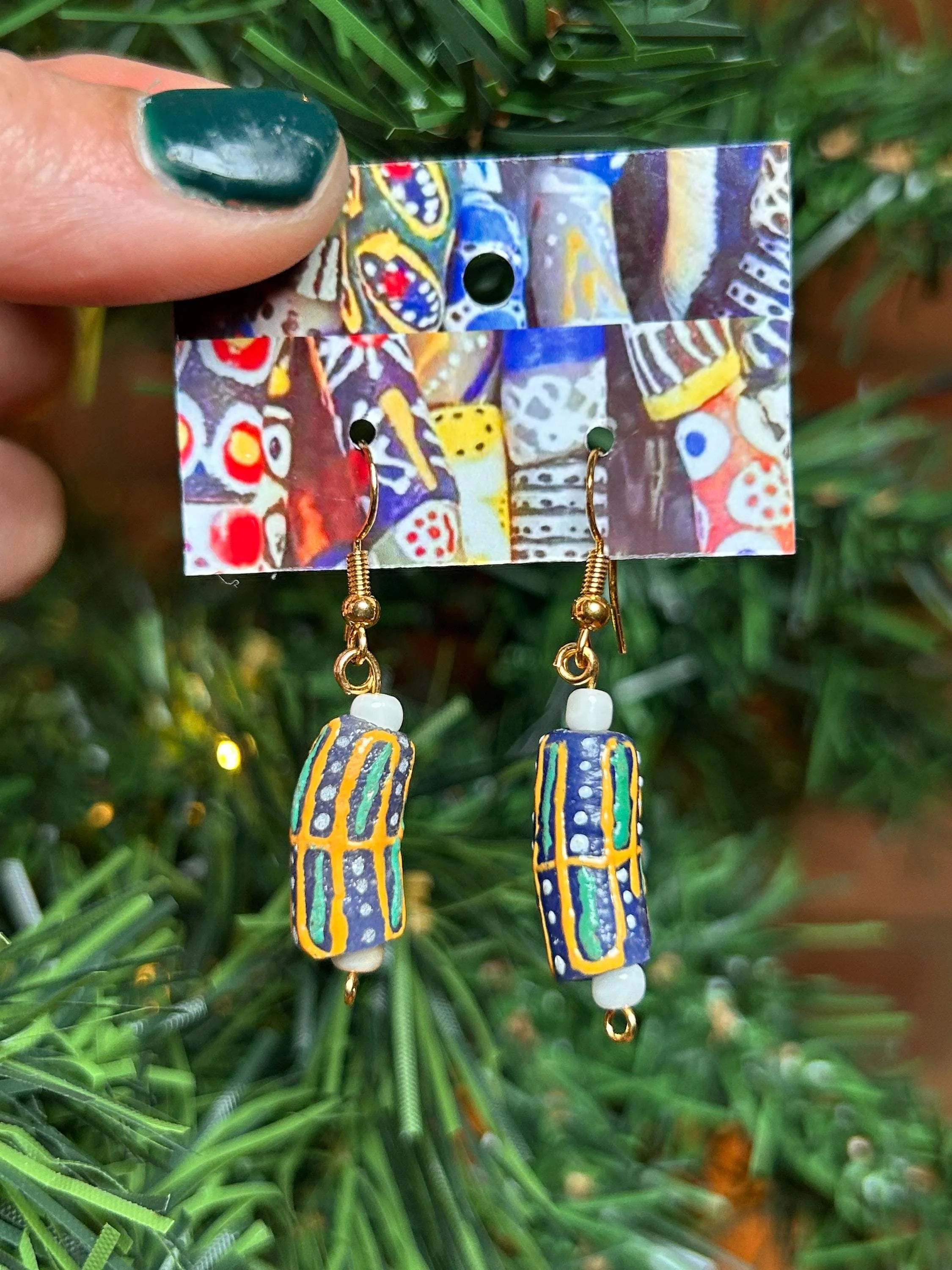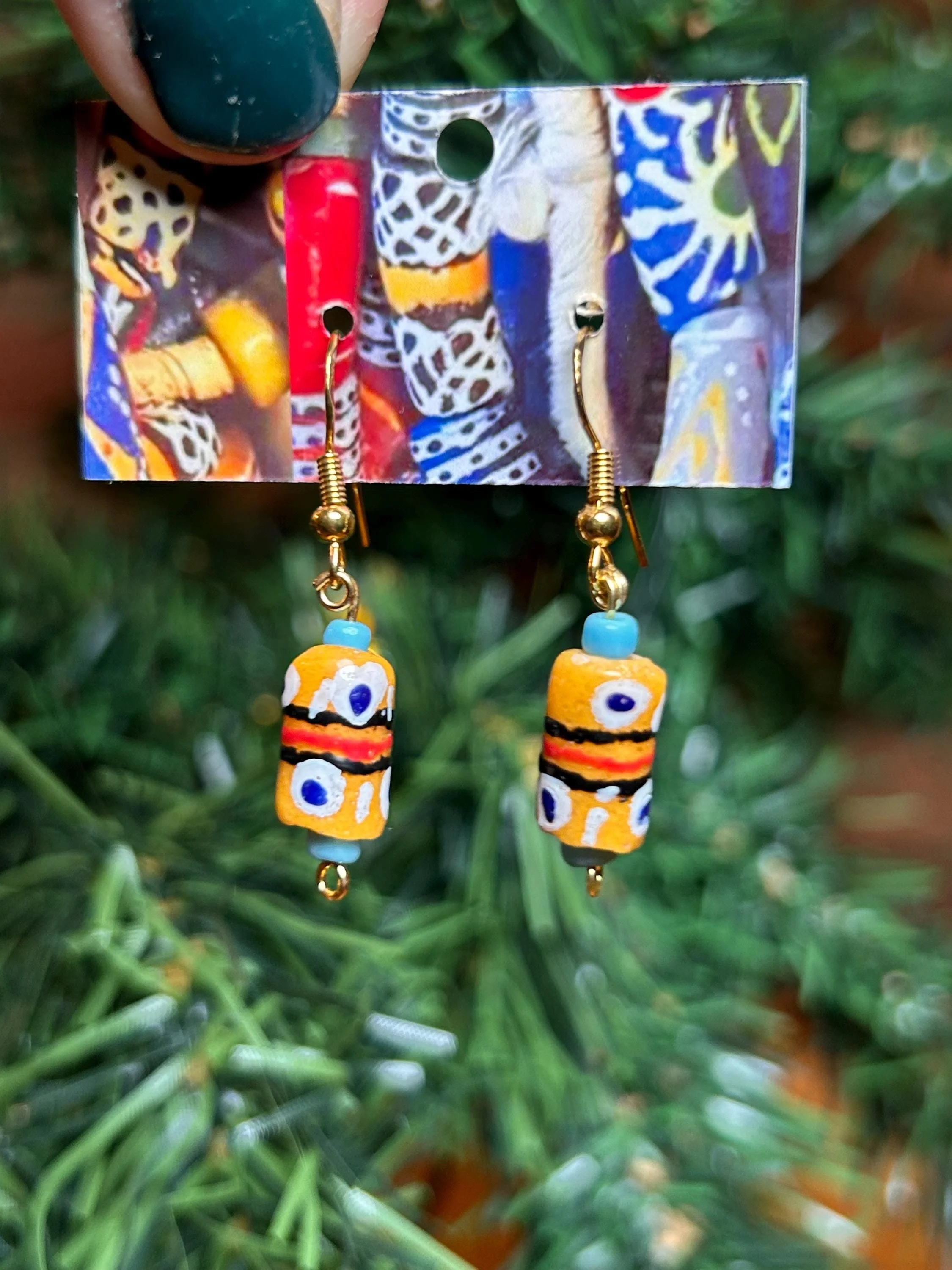 Ghana Glass Bead Earrings | Hand-Painted Recycled Glass