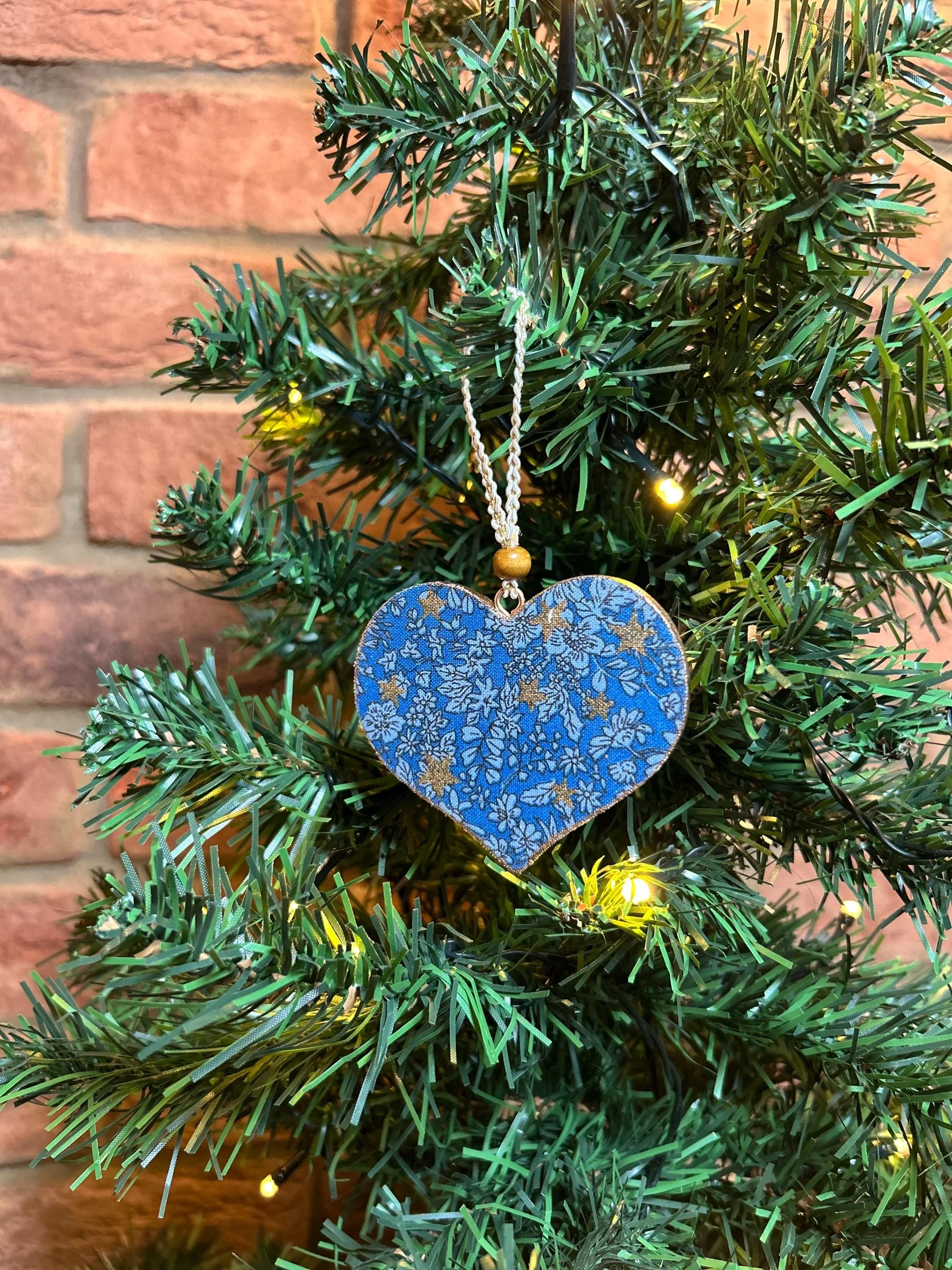 Handmade Liberty Heart Bulbul | Fabric by Riley Blake Designs | Hand Painted Wooden Heart